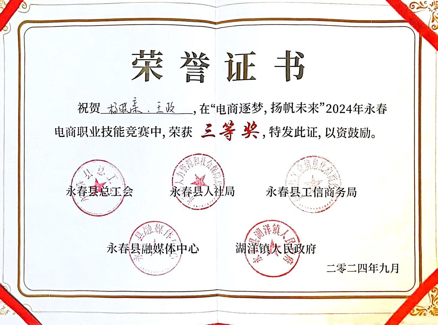 容艺影视产业学院|我院学子喜获“电商逐梦,扬帆未来”2024年永春电商职业技能竞赛三等奖