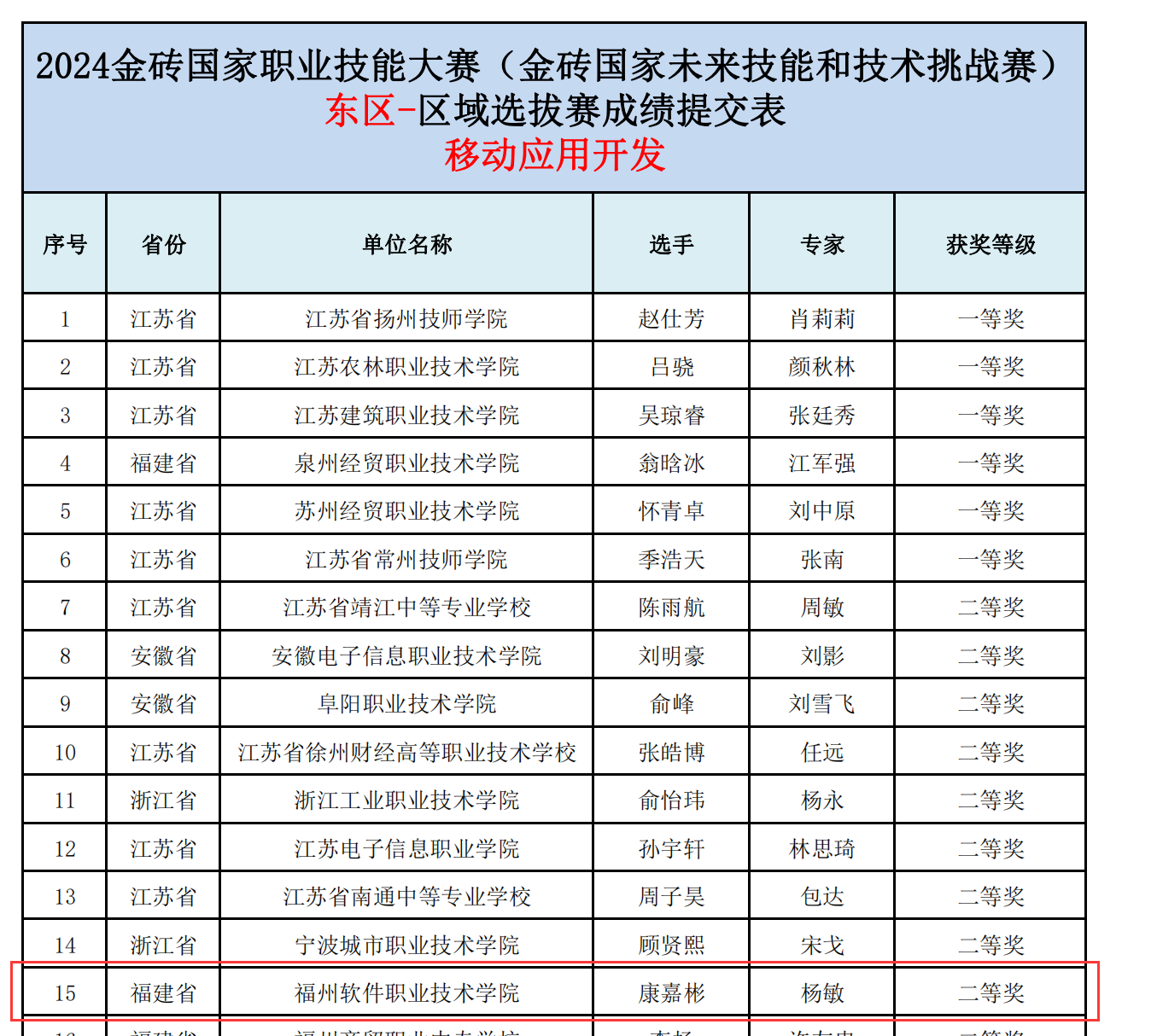 在近日举办的2024年金砖国家职业技能大赛“移动应用开发”赛项东部区域选拔赛中,我校智能产业学院22级智能产品开发与应用专业的康嘉彬同学在面对设备突发故障的不利局面下,凭借出色的技术实力和临危不乱的应变能力,成功斩获二等奖,为学校争光。