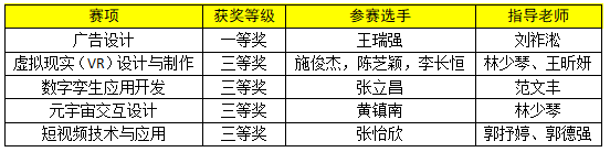 2023年11月14日,第十届海峡两岸暨港澳大学生职业技能大赛中,我校游戏产业学院师生与42所高职院校参赛团队同台竞技并脱颖而出,共斩获一等奖一项、三等奖四项。