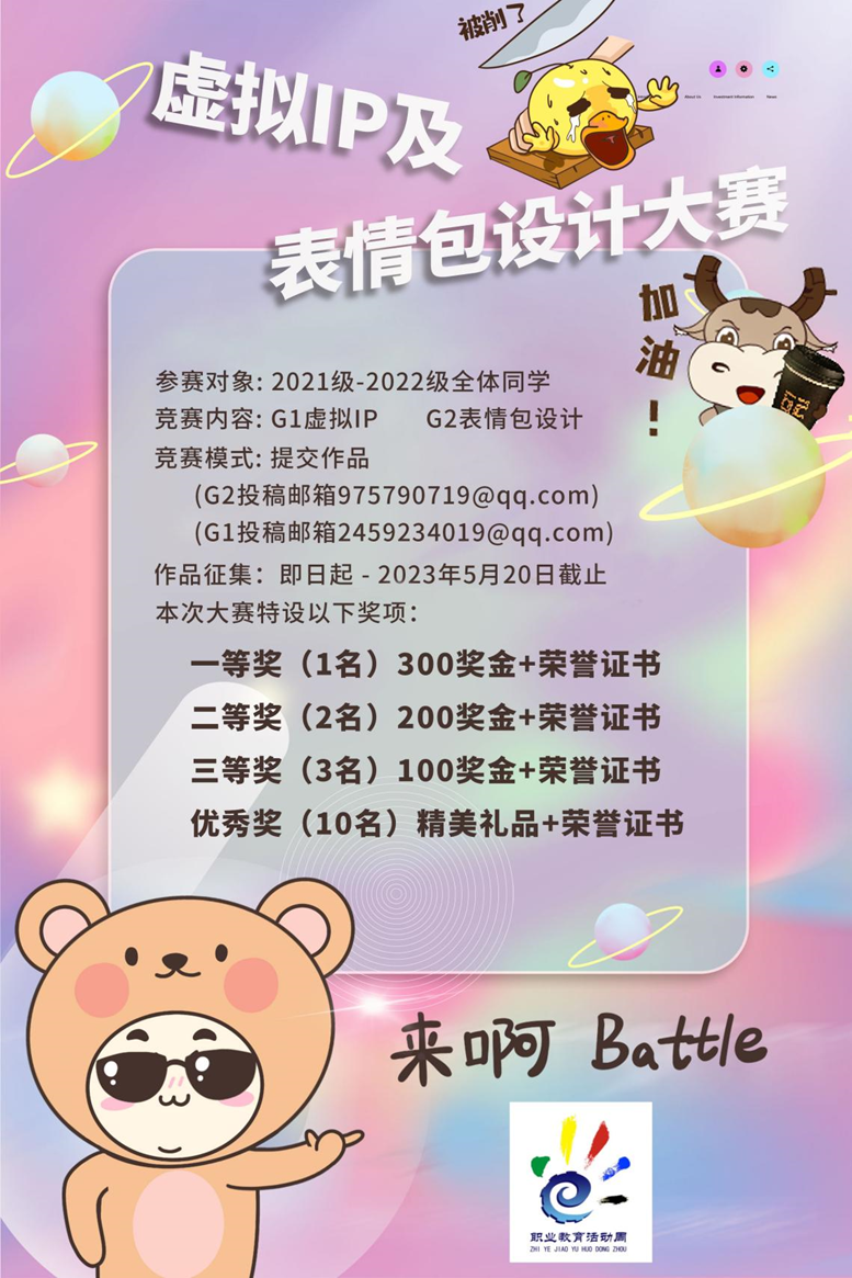 为深入学习贯彻习近平总书记关于职业教育的重要指示精神和全国职业教育大会精神,大力宣传劳模精神、劳动精神、工匠精神,弘扬劳动光荣、技能宝贵、创造伟大的时代风尚;为进一步贯彻与实施 “以赛促学、以赛促教、以赛促改”相关精神和要求,提升学生创新能力和职业技能。容艺影视产业学院举办2023年福建职业教育周平面设计技术技能竞赛、虚拟IP及表情包设计竞赛。通过2023年福建职业教育周技能竞赛系列活动,不仅学生提升专业知识、技术的熟练程度,培养竞争意识和职业精神;同时,不断提高相关专业与产业合作的紧密性,进一步完善和创新人才培养机制,促进产教融合的发展。