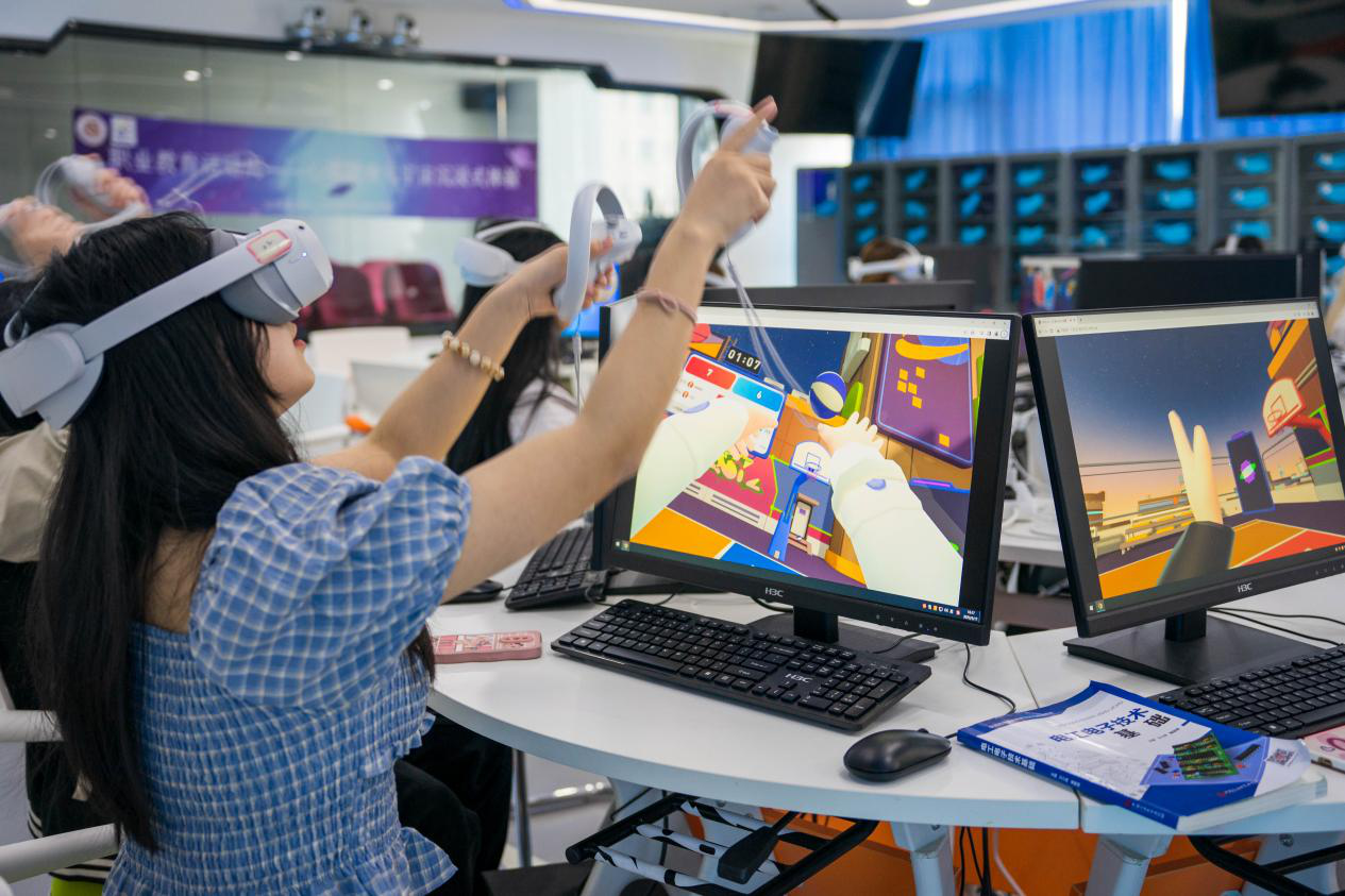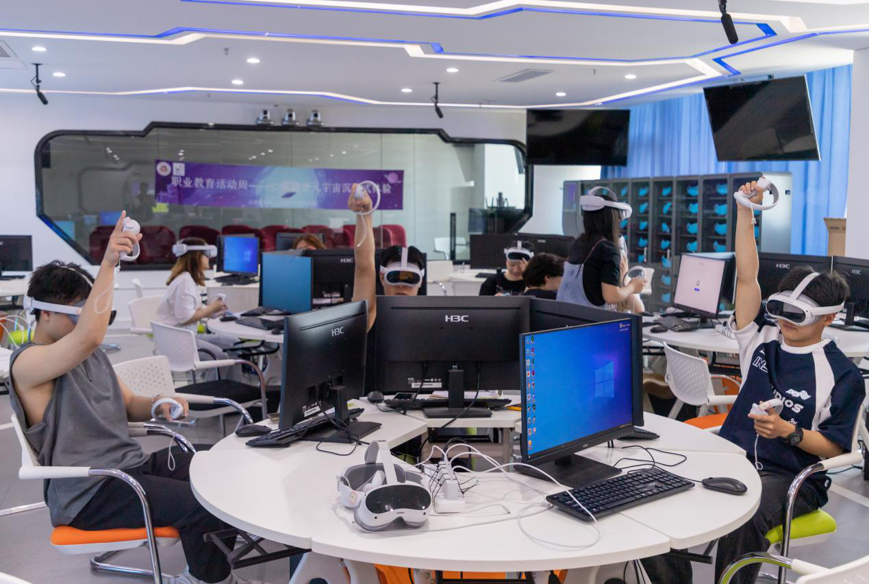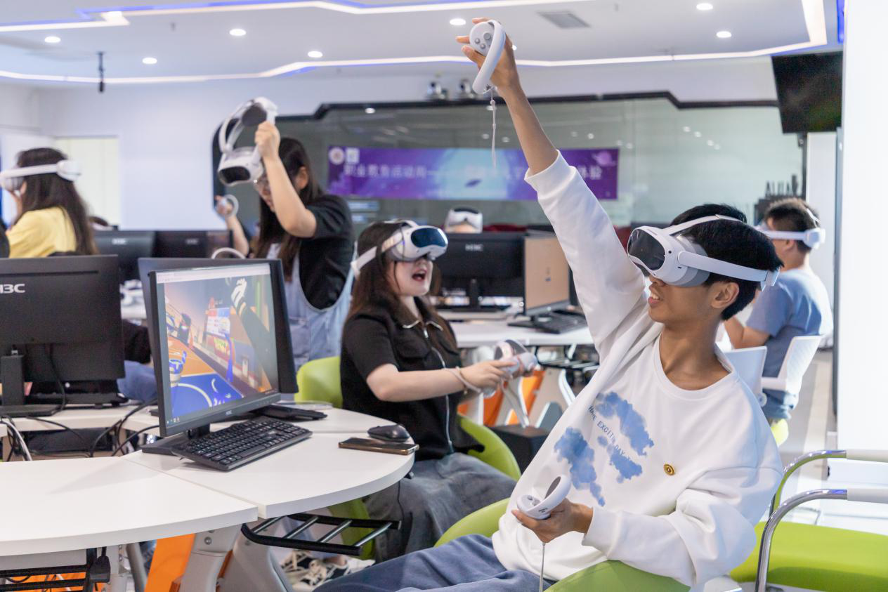 在“数字中国战略”背景下,元宇宙为职业教育创新发展提供了新的契机。元宇宙赋能我校教育教学改革,有助于营造全新的教育生态,推进课堂教学变革。基于“全学期、全元素、全流程”的教育教学数字化转型思路,我校成功开展心理健康元宇宙沉浸式体验、《VR交互设计》课程的“元宇宙”试点公开课等职业教育活动周系列活动。