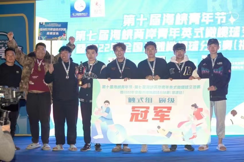 12月18日,第十届海峡青年节系列活动——第七届海峡两岸青年英式橄榄球交流赛在福州闽江公园南江滨沙滩球场举行,我校运动训练专业学生组成的橄榄球队,经过预赛和决赛的激烈角逐,最终荣获触式组碗级冠军!
