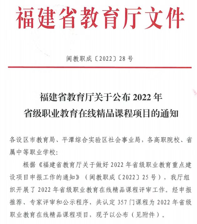 近日,福建省教育厅公布了2022年省级职业教育在线精品课程项目名单,我校徐颖老师负责的《虚拟现实模型设计与制作》、李榕玲老师负责的《游戏角色设计》、吴建美老师负责的《游戏场景设计》和张晓霞老师负责的《游戏道具设计》四门课程成功入选。