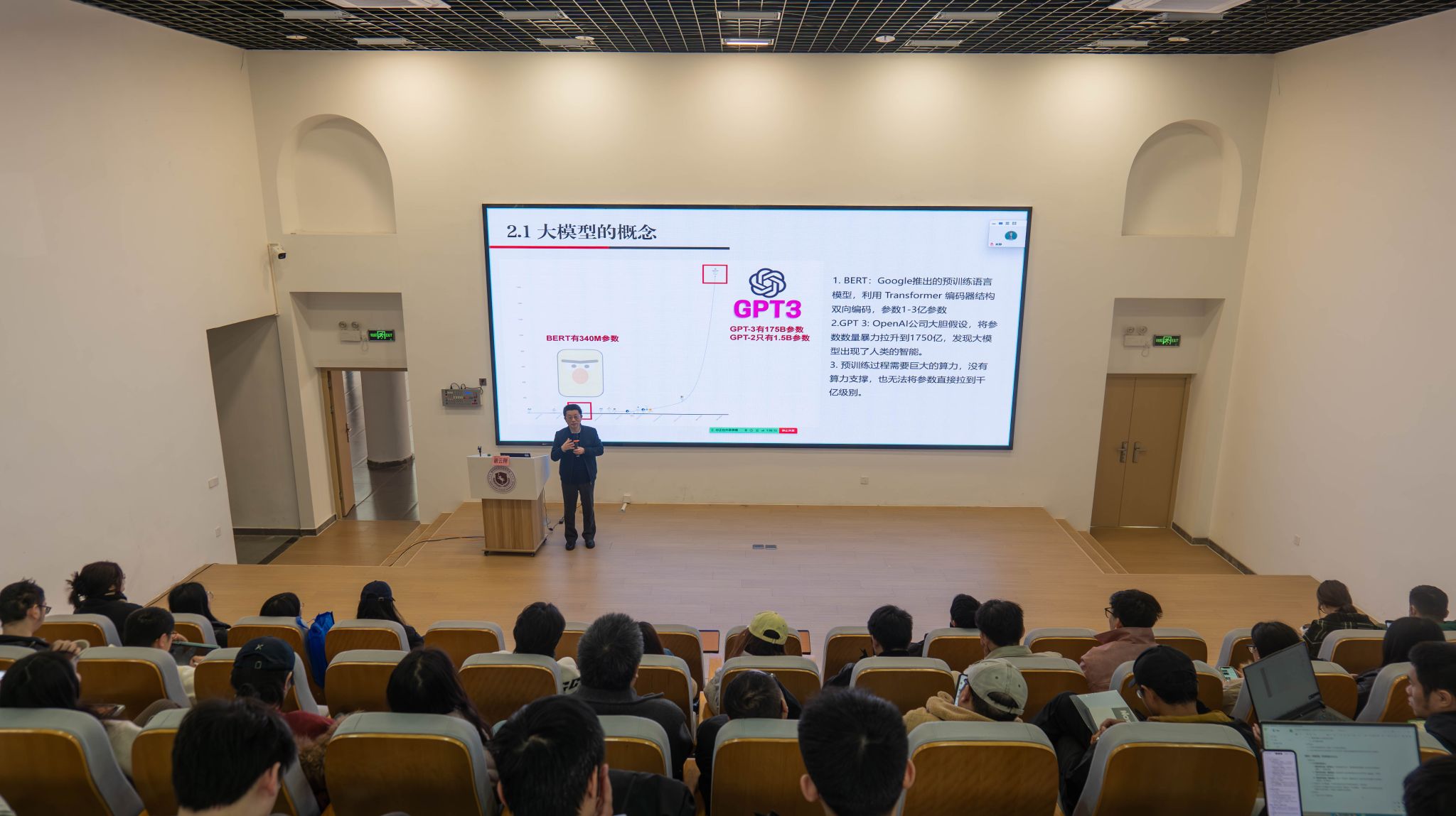 1月14日上午,智能产业学院院长谢云翔作《人工智能技术及应用》主题报告,采用线上+线下的形式,共计百余名教职工参与学习,谢院长系统梳理了人工智能技术的发展历程、大模型的核心原理以及智能体的基本概念与教育应用,为教师搭建起对教学智能体的基础认知框架。