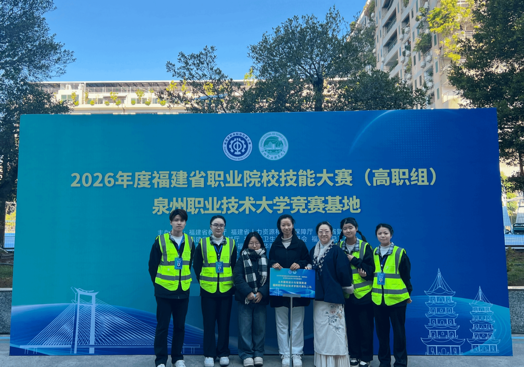 2025年12月31日,由福建省教育厅、人社厅等部门联合主办的2026年福建省职业院校技能大赛(高职组)“土木建筑设计与管理”赛项在泉州职业技术大学圆满落幕。来自全省67支职业院校代表队的选手齐聚一堂、同台竞技。我校智能建造产业学院教师林思琦、陈琳指导的学生团队(郑珞沂、唐晶、陈佳、黄鸿坡),凭借扎实的专业功底与出色的现场表现,荣获省赛三等奖。