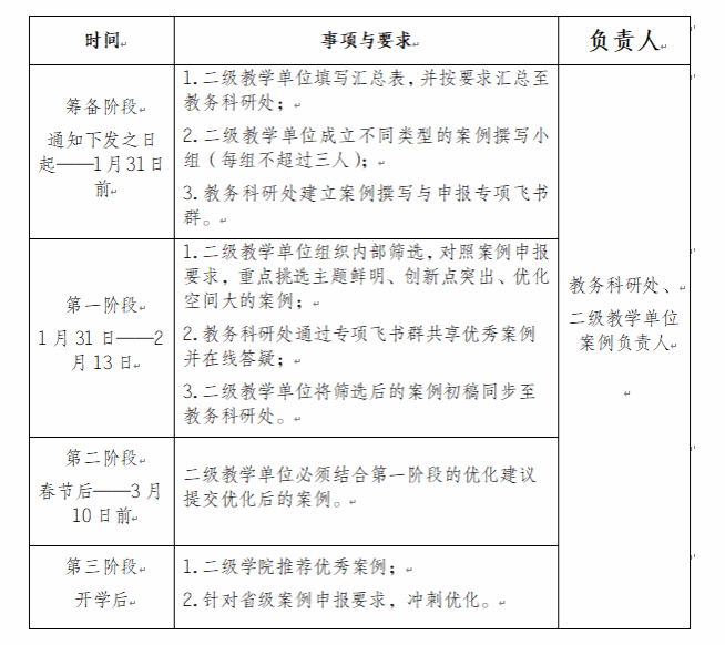 请务必统一规划并严格监控初选与推荐工作的每一个环节,确保此过程的高标准执行。针对各类型案例,请组建一个专门的团队(案例撰写人不超过3人),充分利用团队智慧与协作力量,共同致力于案例撰写与精细化打磨,充分发挥教学共同体的优势与作用,力求呈现最佳成果。